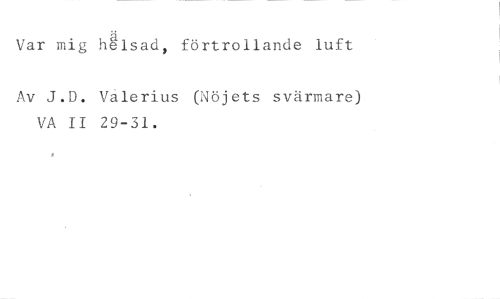 Var mig hglsad, förtrollande luft //// Av J.D. Valerius (Nöjets svärmare) VA II 29-31.