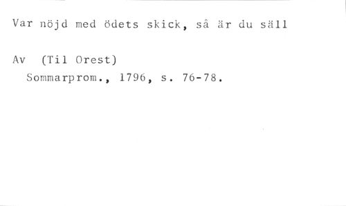 Var nöjd med ödets skick, så är du säll //// Av Ml Orest) //// Sommarprom., 1796, s. 76-78.