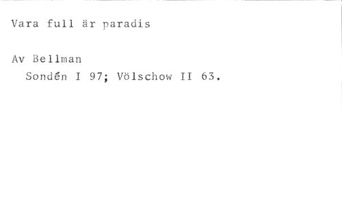 Vara full är paradis //// Av Bellman //// Sondgn I 97; Völschow II 63.