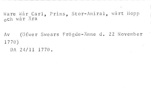 Ware Wår Carl, Prins, Stor-Amiral, wårt Hopp och wår Ära //// Av (Ufwer Swears Frögde-Ämne d. 22 November //// 1770) //// DA 24/11 1770.