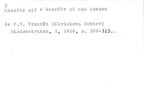 v hvarför så mde handen //// Hvarför så? //// Av F.M. Franzén (Kärlekens Dotter) Skaldestycken, 1, 1810, s. 309-313..