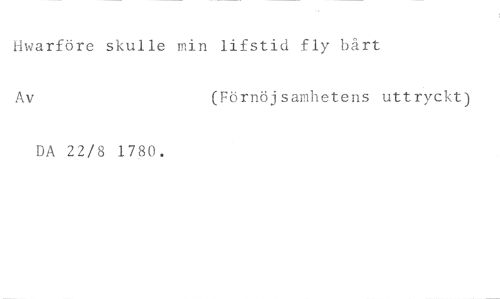 Hwarföre skulle min lifstid fly hårt //// Av (Förnöjsamhetens uttryckt) //// DA 22/8 1780.