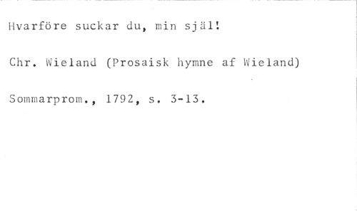 Hvarföre suckar du, min själ! //// Chr. Wieland (Prosaisk hymne af Wieland) Sommarprom., 1792, s. 3-13.