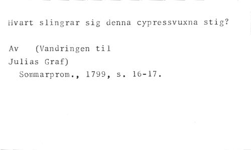 Kvart slingrar sig denna cypressvuxna stig? //// Av (Vandringen til //// Julias Graf) //// Sommarprom., 1799, s. 16-17.