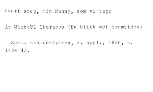 övart steg, min Nanny, som vi tage //// Av MichaUl Choraeus (En blick mot framtiden) //// Samt. skaldestycken, 2. u 1., 1826, s. 142-143.