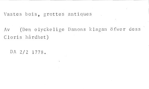 Vastes bois, grottes antiques //// Av (Den olyckelige Damons klagan öfwer dess • //// Cloris hårdhet) //// DA 2/2 1778.