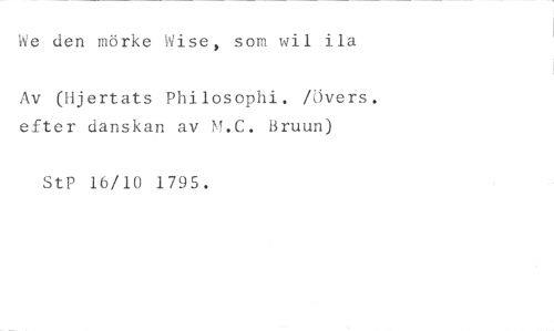 We den mörke Wise, som wil ila //// Av (Hjertats Philosophi. /Övers. efter danskan av M.C. Bruun) //// StP 16/10 1795.