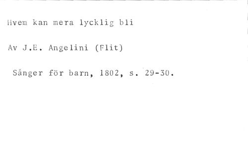 hvem kan mera lycklig bli Av J.E. Angelini (Flit) //// Sånger för barn, 1802, s. 29-30.