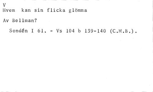 V //// Hvem kan sin flicka glömma //// Av Bellman? //// Sond6n I 61. - Vs 104 b 139-140 (C.M.B.) .