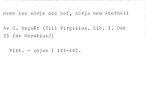 kiven kan sörja med hof, sörja med återhåll //// Av G. Regn6r (Till Virgilius. Lib. I. Ode 25 /av Horatius/) //// Vitt. - nöjen I 141-142.
