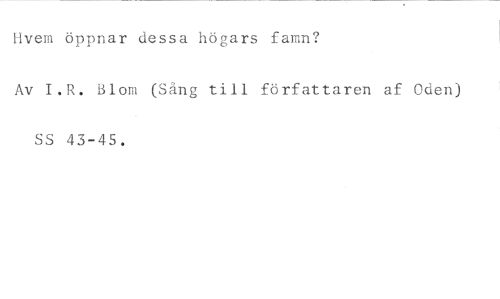 Hvem öppnar dessa högars famn? //// Av I.R. Blom (Sång till författaren af Oden) SS 43-45.