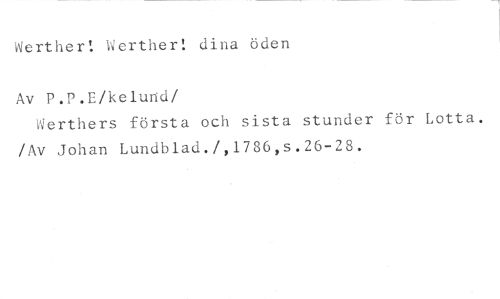 Werthert Werther: dina öden //// Av P.P.E/kelund //// /Werthers första och sista stunder för Lotta. /Av Johan Lundblad./,1786,s.26-28.