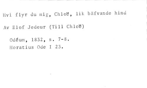 Hvi flyr du mig, ChloU, lik bäfvande hind Av Elof Jedeur (Till Chlon //// °Mu:n, 1832, s. 7-8. Horatius Ode 1 23.