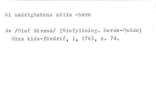Wi nedrighetens sälla -barn //// Av /Olof Strand/ (Rimfyllning. Herde-Qwäde) Mina tids-fördrif, 1, 1763, s. 74.