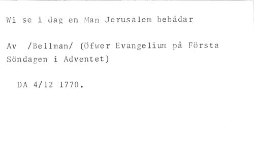 Wi se i dag en Man Jerusalem bebådar //// Av /Bellman/ (Öfwer Evangelium på Första Söndagen i Adventet) //// DA 4/12 1770.