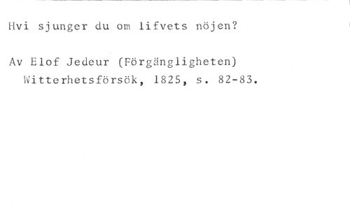 Hvi sjunger du om lifvets nöjen? //// Av Elof Jedeur (Förgängligheten) Witterhetsförsök, 1825, s. 82-83.
