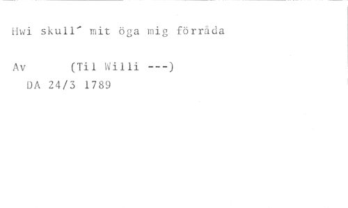 Uwi skull' mit öga mig förräda //// Av (Til Willi ---) //// DA 24/3 1789