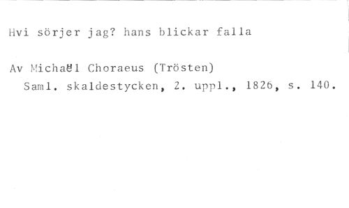 Hvi sörjer jag? hans blickar falla //// Av Michael Choraeus (Trösten) //// Saml. skaldestycken, 2. uppl., 1826, s. 140.