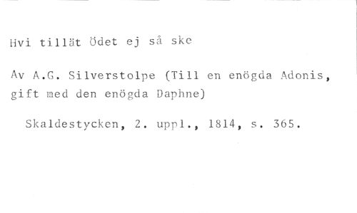 livi tillät ödet ej så ske //// Av A.G. Silverstolpe (Till en enögda Adonis, gift med den enögda Daphne) //// Skaldestycken, 2. uppl., 1814, s. 365.