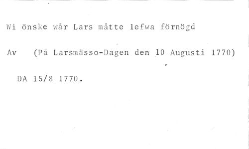 Wi änske wår Lars måtte lefwa förnögd //// Av (På Larsmässo-Dagen den 10 Augusti 1770) //// r //// DA 15/8 1770.