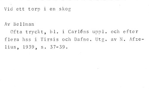 Vid ett torp i en skog //// Av Bellman //// Ofta tryckt, bl. i Carl6ns uppl. och efter flera hss i Tirsis och Dafne. Utg. av N. Afzelius, 1939, s. 37-39.