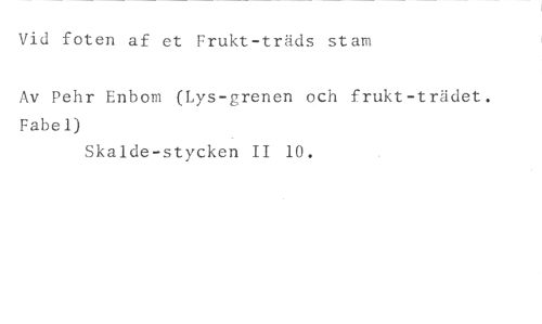 Vid foten af et Frukt-träds stam //// Av Pehr Enbom (Lys-grenen och frukt-trädet. Fabel) //// Skalde-stycken II 10.