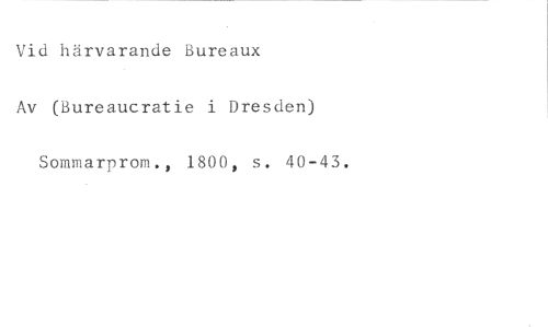 Vid härvarande Bureaux //// Av (Bureaucratie i Dresden) Sommarprom., 1800, s. 40-43.