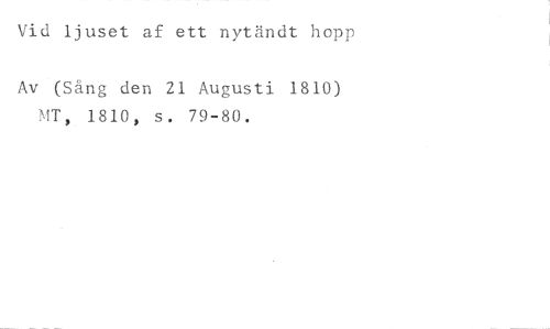 Vid ljuset af ett nytändt hopp //// Av (Sång den 21 Augusti 1810) MT, 1810, s. 79-80.