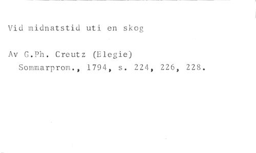 Vid midnatstid uti en skog //// Av G.Ph. Creutz (Elegie) //// Sommarprom., 1794, s. 224, 226, 228.