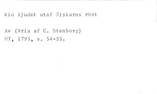 Wid ljudet utaf Älskarns röst //// Av (Aria af C. Stenborg) MT, 1795, s. 54-55.