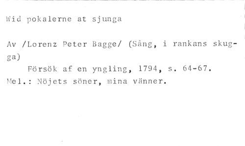raid pokalerne at sjunga //// Av /Lorenz Peter Bagge/ (Sång, i rankans s ga) //// Försök af en yngling, 1794, s. 64-67. Hel.: Nöjets söner, mina vänner.