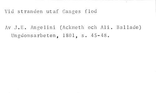 Vid stranden utaf Ganges flod //// Av J.E. Angelini (Ackmeth och Ali. Ballade) Ungdomsarbeten, 1801, s. 45-48.