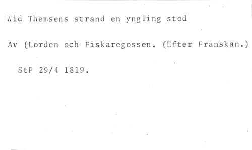 Wid Themsens strand en yngling stod //// Av (Lorden och Fiskaregossen. (Efter Franskan.) //// StP 29/4 1819.