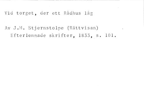 Vid torget, der ett Rådhus låg //// Av J.M. Stjernstolpe (Rättvisan) Efterlemnade skrifter, 1833, s. 101.