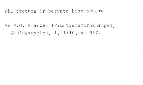Vid tretton år begynte Lise addera //// Av F.M. Franzén (Fruntimmersräkningen) Skaldestycken, 1, 1810, s. 357.