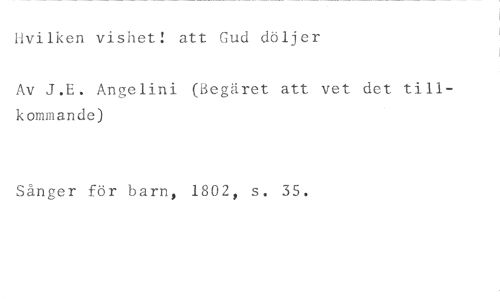 Hvilken vishet! att Gud döljer //// Av J.E. Angelini (Begäret att vet det tillkommande) //// Sånger för barn, 1802, s. 35.