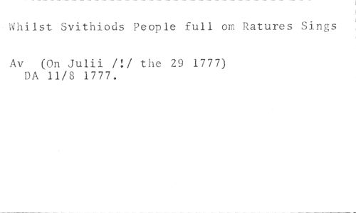 • Whilst Svithiods People full om Ratures Sings //// Av (On Julii /:/ the 29 1777) DA 11/8 1777.