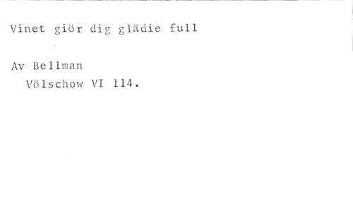 Vinet giör dig glädje full //// Av Bellman //// Völschow VI 114.