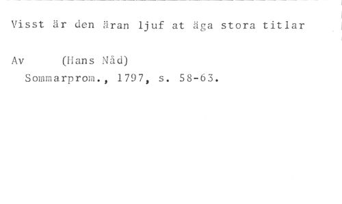 Visst är den äran ljuf at äga stora titlar //// Av (Hans Nåd) //// Sommarprom., 1797, s. 58-63.