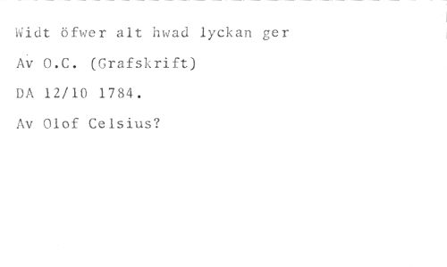 Widt öfwer alt hwad lyckan ger AV O.C. (Grafskrift) //// DA 12/10 1784. //// Av Olof Celsius?