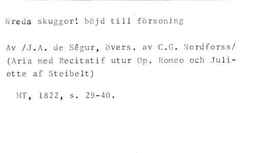 reda skuggor! böjd till försoning //// Av /J.A. de Stigur, övers, av C.G. Nordforss/ (Aria med Recitatif utur Op. Romeo och Juliette af Steibelt) //// MT, 1822, s. 29-40.