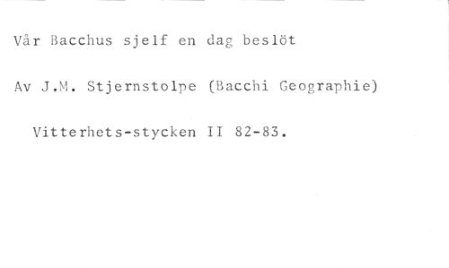 Vår Bacchus sjeif en dag beslöt //// Av J.M. Stjernstolpe (Bacchi Geographie) Vitterhets-stycken II 82-83.