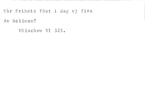 Vår Frihets Fäst i dag vj fira Av Bellman? //// Völschow VI 325,