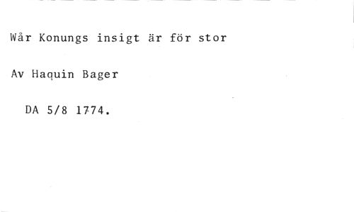 Wår Konungs insigt är för stor Av Haquin Bager DA 5/8 1774.