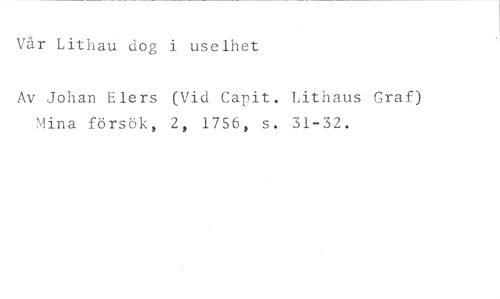 Vår Lithau dog i uselhet //// Av Johan Elers (Vid Capit. Lithaus Graf) Mina försök, 2, 1756, s. 31-32.