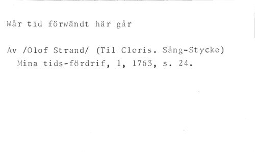 Wår tid förwändt här går //// Av /Olof Strand/ (Til Cloris. Sång-Stycke) Mina tids-fördrif, 1, 1763, s. 24.