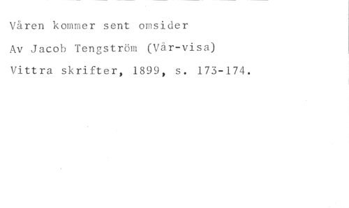 Våren kommer sent omsider //// Av Jacob Tengström (Vår-visa) Vittra skrifter, 1899, s. 173-174.