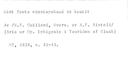 tvärt fasta vänskapsband är knutit //// Av /N.F. Guillard, övers. av A.F. Ristell/ (Aria ur Op. Iphigenie i Tauriden af Gluck) //// MT, 1834, s. 41-43.