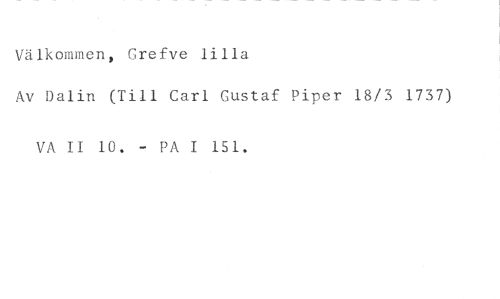 Välkommen, Grefve lilla //// Av Dalin (Till Carl Gustaf Piper 18/3 1737) //// VA 11 10. - PA 1 151.