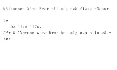Wälkommen käre Bror til mig och flere wänner //// Av //// DA 17/8 1770. //// Jfr Wälkommen ware Bror hos mig och alla wänner
